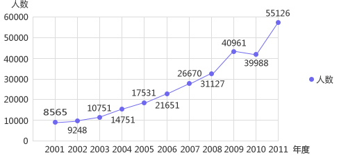 爽凡育儿网2001-2011年开始试管婴儿周期人数统计